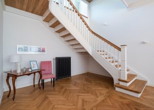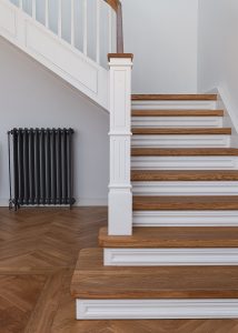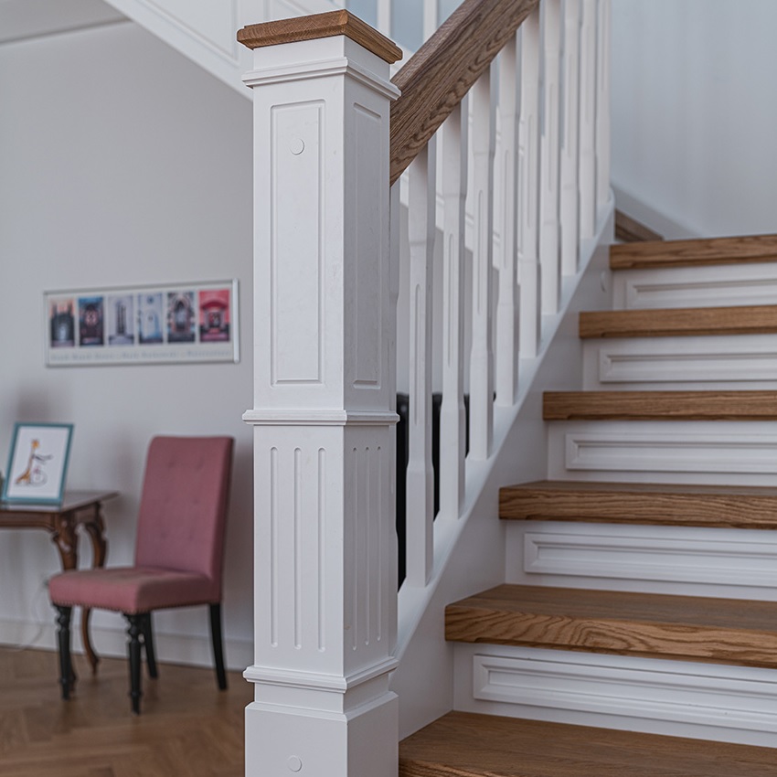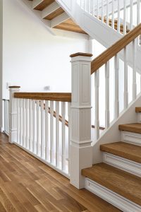 Typ: Geschlossene Wangentreppe mit weißem Geländer