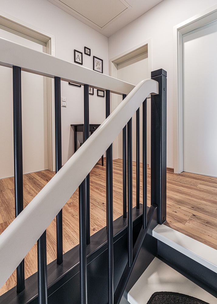 Wangen und Geländer anthrazitgrau lackiert nach RAL.
